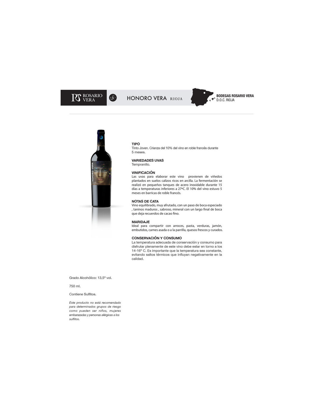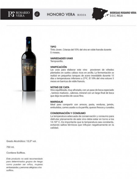 Honoro Vera Rioja es un vino tinto elaborado por Bodegas Rosario Vera en la D.O.Ca. Rioja.